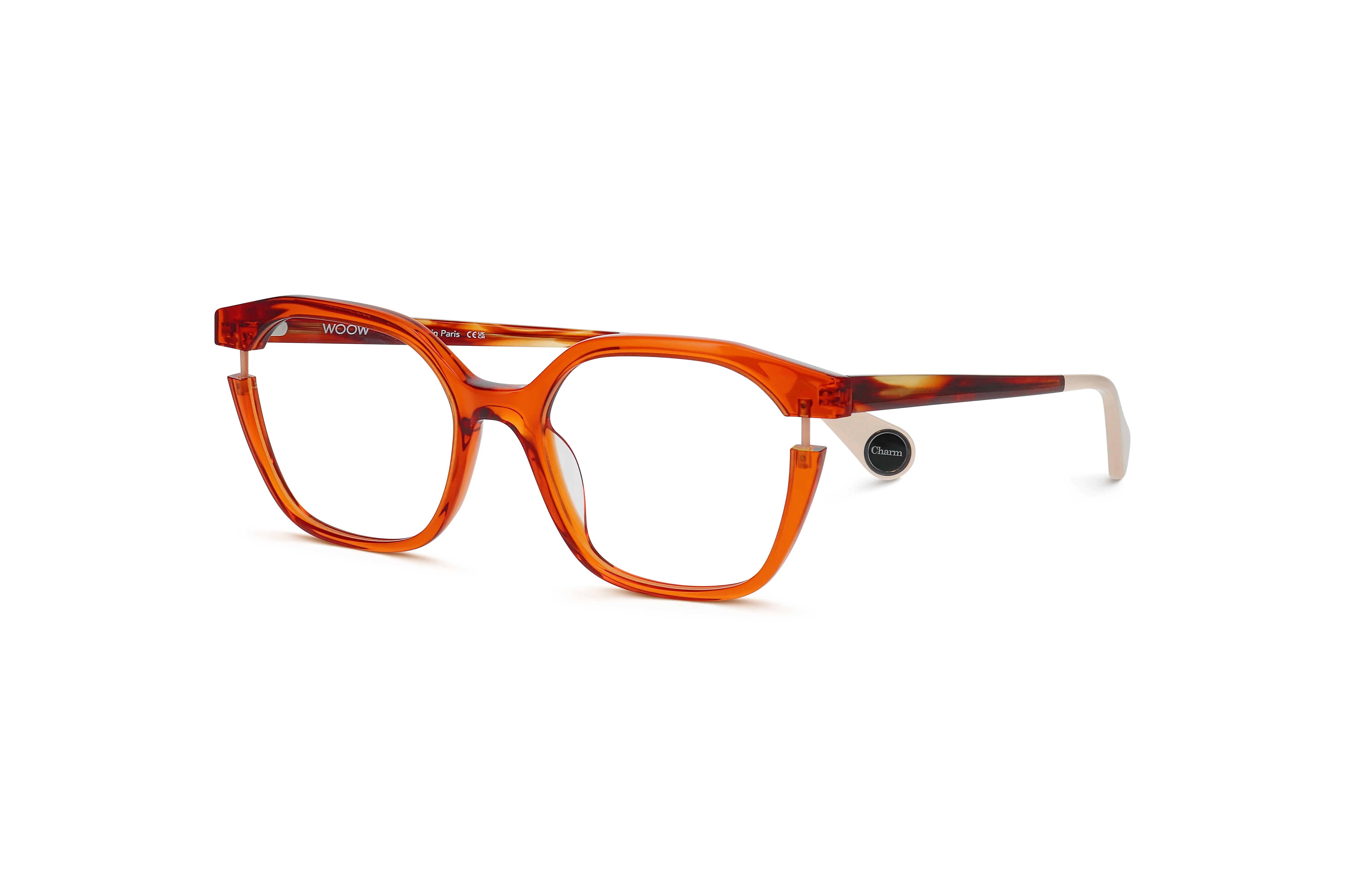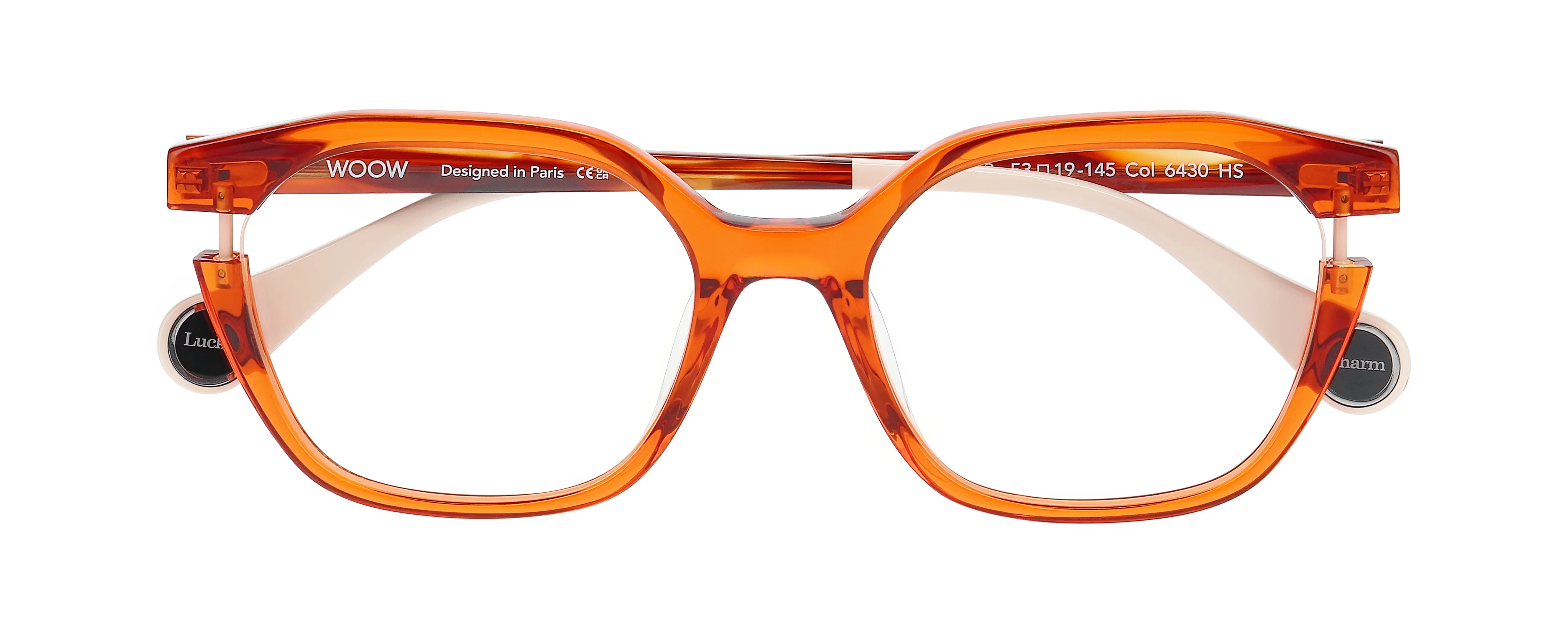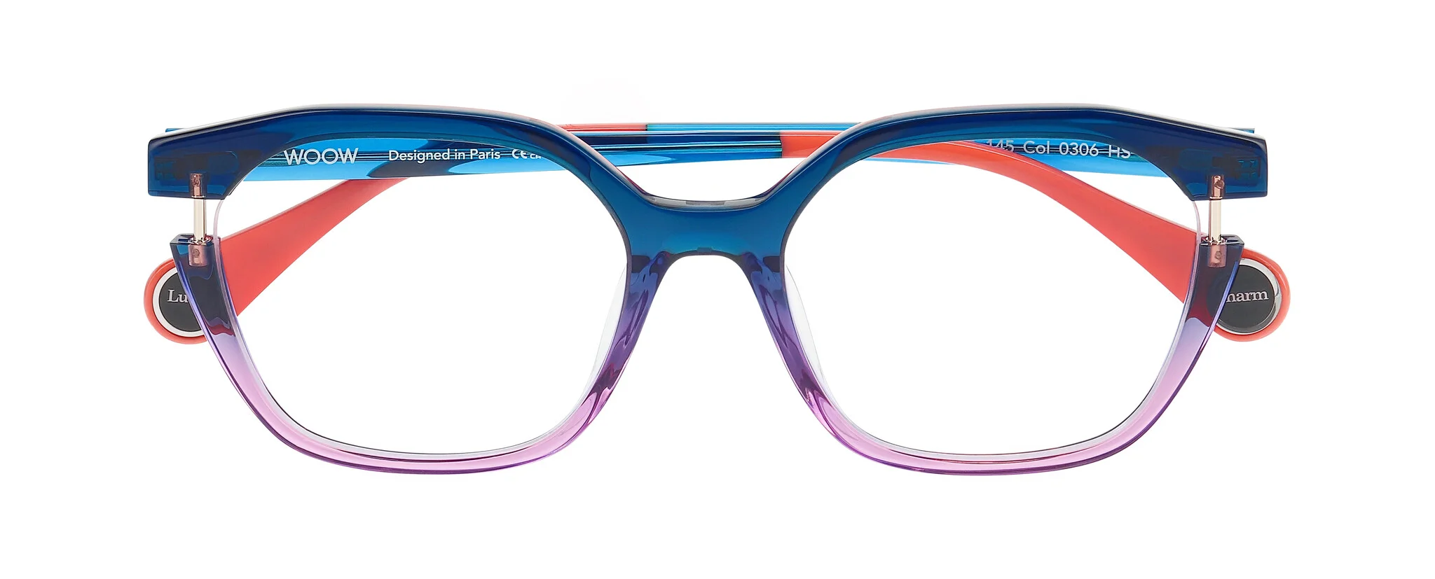LUCKY CHARM will bring you luck! Like a little amulet, these frames are adorned with a precious detail. Between galvanic tints and intense neon shades, a metal bar appears from the openworked acetate like a colourful talisman: a way to turn everyday life into a series of winning moves!