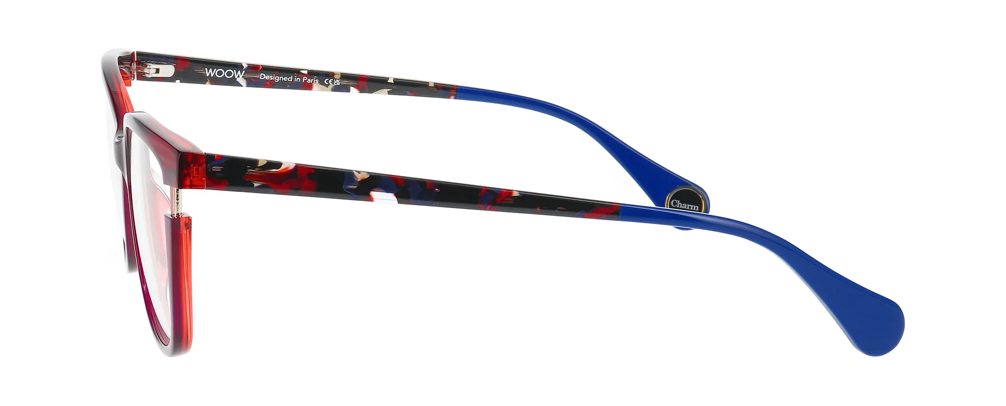 LUCKY CHARM will bring you luck! Like a little amulet, these frames are adorned with a precious detail. Between galvanic tints and intense neon shades, a metal bar appears from the openworked acetate like a colourful talisman: a way to turn everyday life into a series of winning moves!